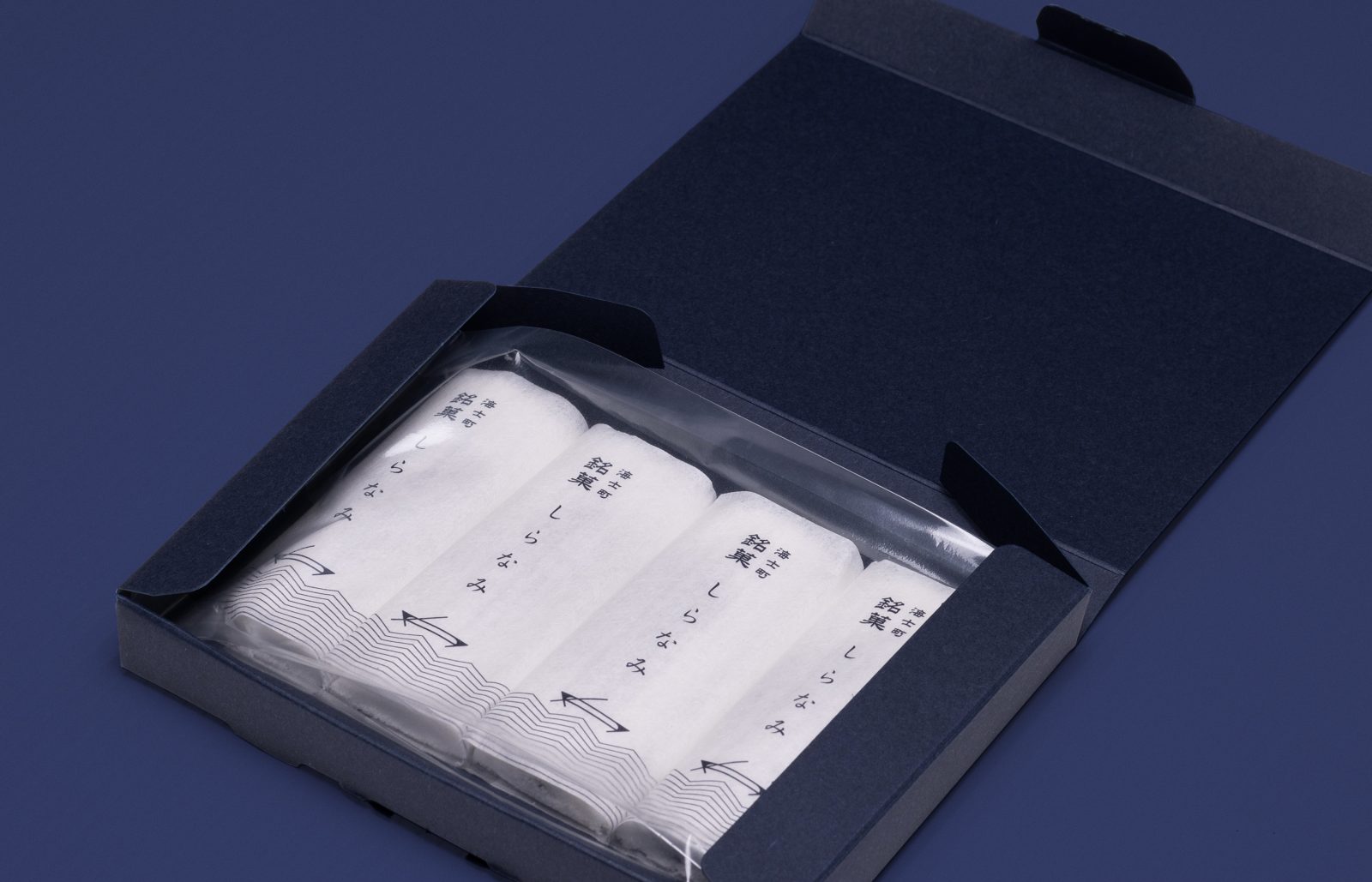 島根県隠岐の島海士町の銘菓「白浪」パッケージデザイン、及び販促物デザイン。