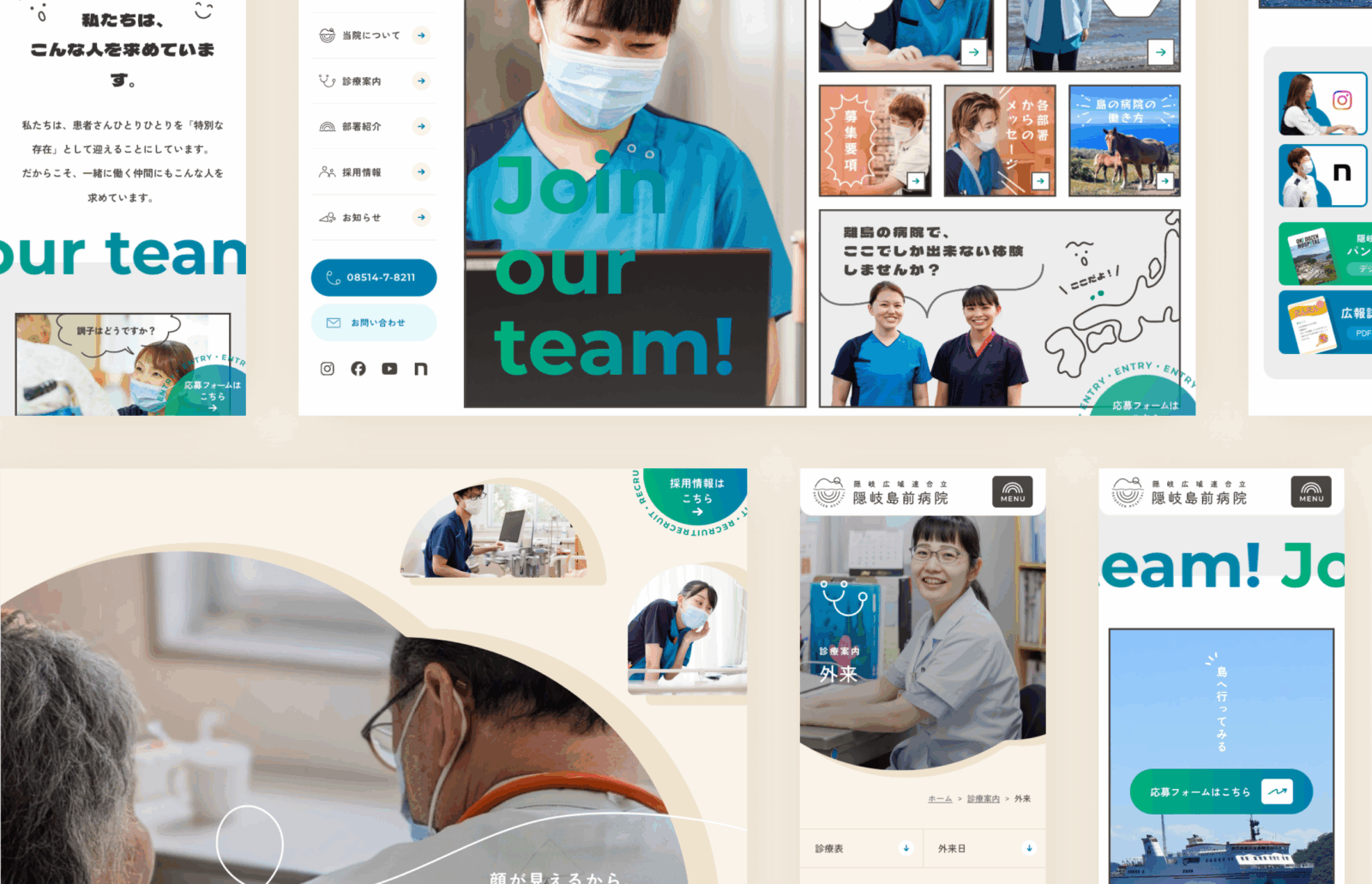 隠岐島前病院は、島根県の隠岐島前(隠岐郡西之島町)にある病院。特に大きな課題として取り組まれているのが、医療従事者(医師・看護師)の確保。ウェブサイトリニューアルの大きな目的の1つとして、採用に特に力を入れ企画制作をさせていただきました。