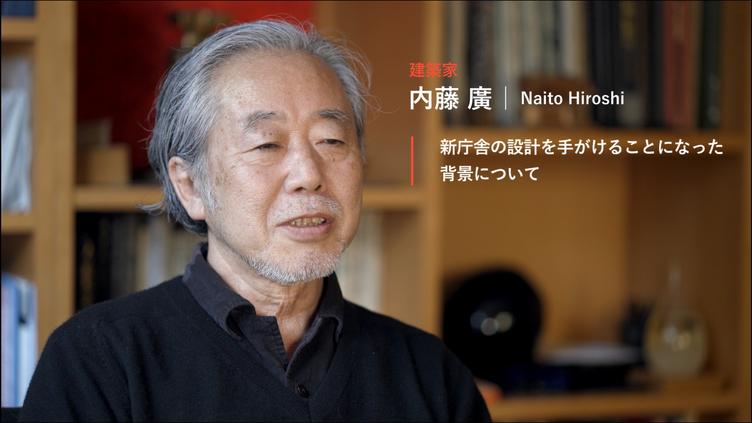 この映像は増田友也さんの意匠を受け継ぎつつ、内藤廣さんをはじめとする鳴門市新市庁舎の誕生に深く関わった方々のインタビューを軸に構成しました。