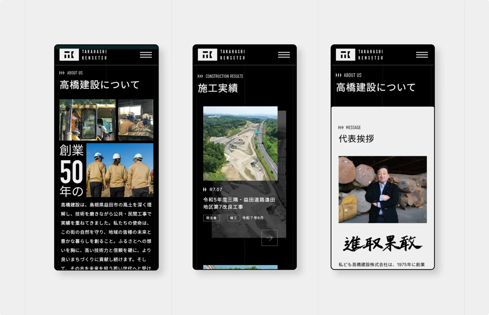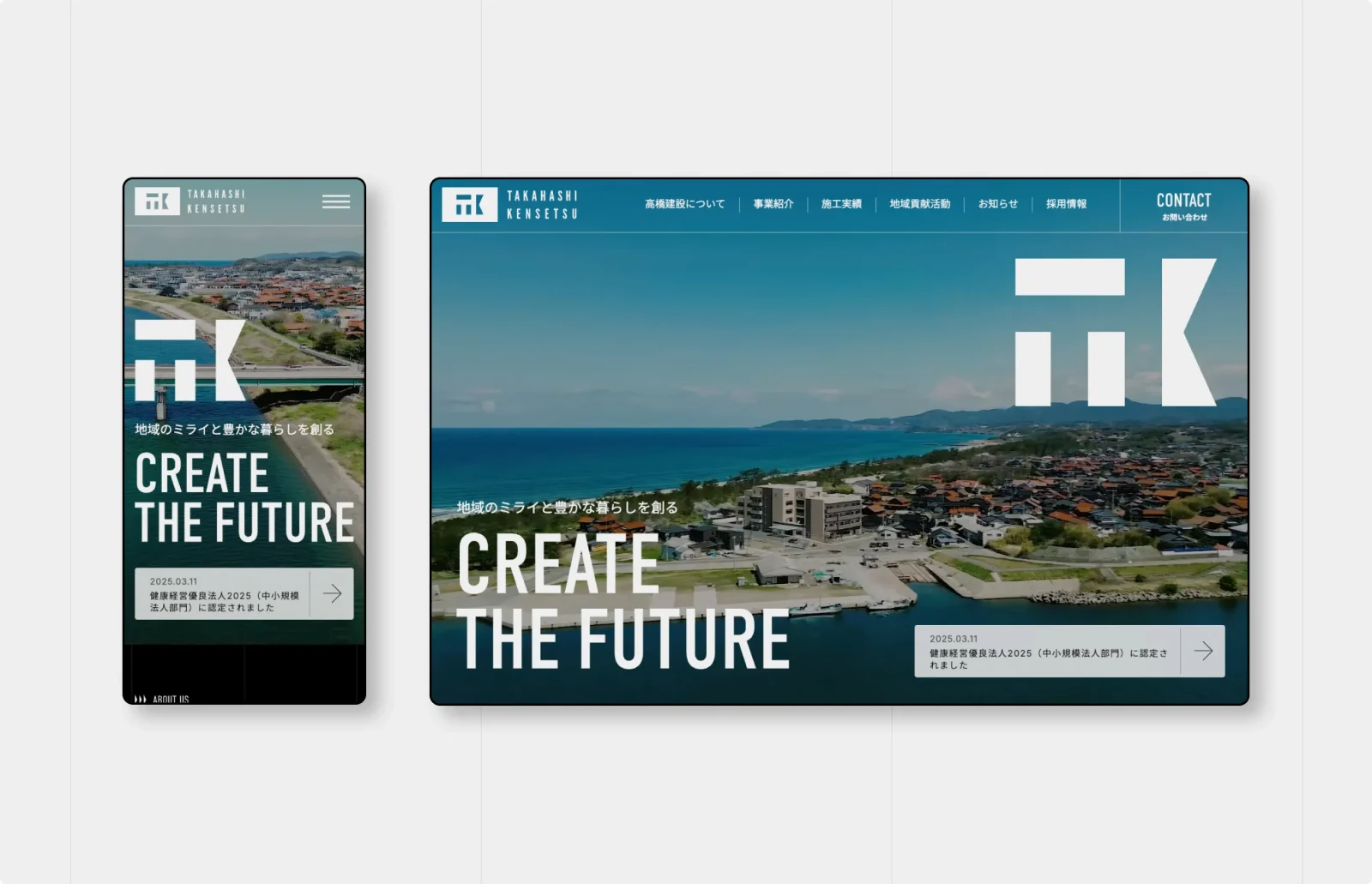 高橋建設株式会社 コーポレートサイト 企画制作 WEB 高橋建設株式会社 コーポレートサイト 企画制作 2025 Jul · WEB ライブサイトを見る 島根県益田市を拠点に土木・建設事業を展開される高橋建設株式会社様。2025年の今年、創業50周年を迎えるにあたり、コーポレートサイトのリニューアルを担当させていただきました。 Credits Designer 中田ひなの Director 大石淳司 Development 廣戸勇樹 THANK YOUありがとうございます 制作実績一覧へ 次の事例へ
