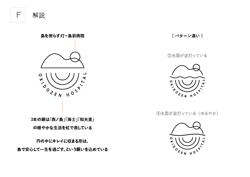 島前病院さんの体制は民主主義で、決定事項は多数決で行うスタイルでした。そして、皆さんがそれぞれとても熱い思いを持っていらっしゃるという特徴がありました。ロゴの方向性を決めていく中で、院内でもさまざまな意見があり、私が思っている「島前病院らしさ」と病院の皆さまが思う「らしさ」にキャップを感じる事がありました。みんなに愛されるロゴにしたいけれど、どの意見を聞き入れたらいいのか、自分の中で軸がブレてしまい、とても苦戦しました。