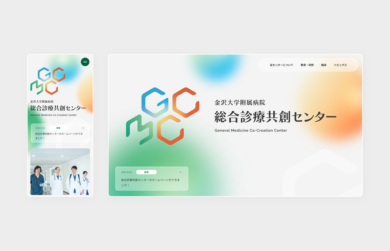 金沢大学附属病院で新たに始動した、総合診療共創センター(GMCC)のロゴ制作とホームページ制作を担当しました。